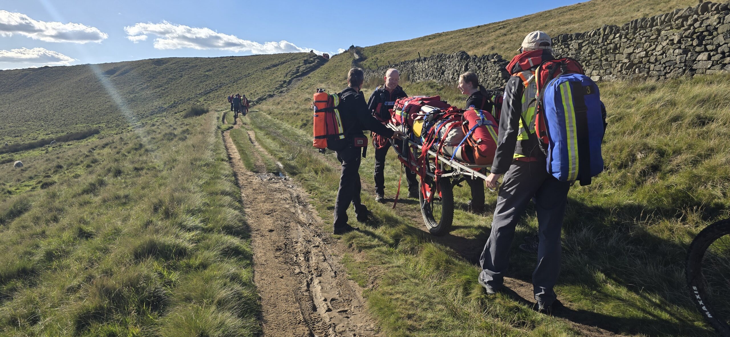 We took an urgent call from East Midlands Ambulance Service to assist a 64 year old male who had gone over his handlebars whilst mountain biking towards Barber Booth / Edale from Edale Cross. His location was towards the top of the Jacob’s Ladder track. He was reported as head injury and shoulder injury, with...