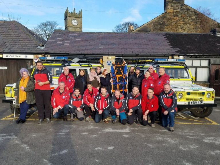 The team were delighted to be able to welcome the family of Hannah Lowe to our base in Hayfield today. Hannah tragically lost her life at Kinder Downfall in April of this year but, following the incident, her family and friends have undertaken a simply astounding series of fund-raising events for the team, in honour of Hannah. Two of the most recent and significant purchases enabled by this fund-raising are a training defibrillator and a new SAR rescue stretcher, named ‘Hannah’ in her memory. Hannah’s family visited to meet some of the team, tour the base and take part in an informal hand-over’ of the stretcher. A tragic event for Hannah’s family, this has also been an incredibly emotional experience for the team and the two will forever be connected, not least through this very fitting tribute.